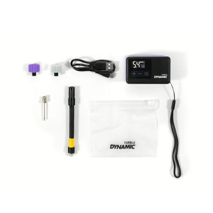 Turblo je kapesní elektrický kompresor, který spojuje ultralehkou konstrukci s maximálním výkonem a jednoduchým použitím. S hmotností pouhých 115 g se snadno vejde do kapsy dresu nebo brašny a díky digitálnímu displeji s přesným měřením tlaku a funkcí automatického zastavení vždy zajistí správné nahuštění. Je kompatibilní s ventily Presta i Schrader, disponuje integrovaným LED světlem pro noční použití a nabíjí se přes USB-C. Použití je jednoduché a rychlé: Postup použití: Podržte tlačítko napájení 3 sekundy pro zapnutí. Nastavte požadovaný tlak tlačítky [+] a [–]. Připojte pumpu k ventilu (bílý adaptér Schrader, fialový Presta). Zkontrolujte tlak na digitálním displeji. Stiskněte tlačítko napájení – kompresor se automaticky zastaví při dosažení hodnoty. Odpojte pumpu a vypněte ji podržením tlačítka. Hlavní přednosti: ultralehká konstrukce – jen 115 g digitální displej s reálným tlakem a funkcí auto-stop maximální tlak 8,0 bar / 116 PSI výkon 14 l/min, baterie 500 mAh s nabíjením přes USB-C integrované LED světlo pro snadnou manipulaci ve tmě kompatibilní s Presta a Schrader ventily + možnost nafukování míčů voděodolné pouzdro a kompletní příslušenství v balení 2letá záruka