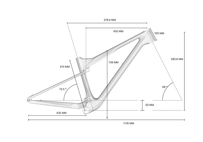 31,6 mm sedlovka, zadní rozteč kompatibilní s 12x148 mm UDH, vnitřní vedení kabelů, integrovaný zadní blatník, sedlová objímka a vodítko řetězu.